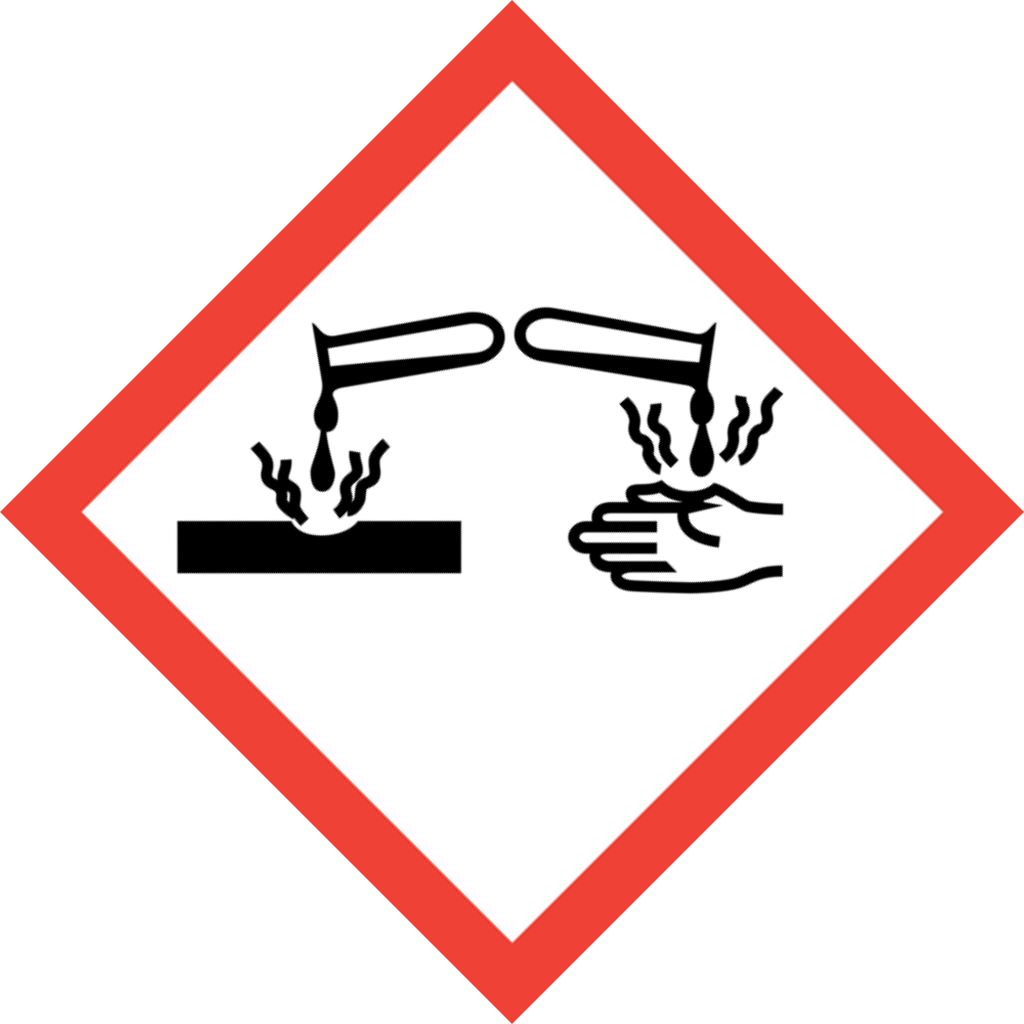 GHS05 – substancja lub mieszanina żrąca, powodująca poważne oparzenia skóry, ciężkie uszkodzenia oczu i/lub korozję metali.