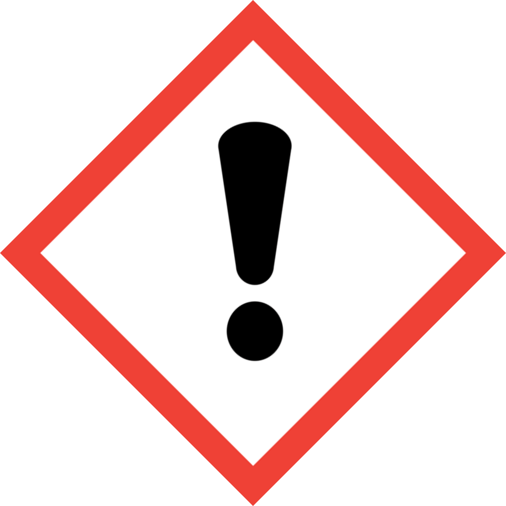 GHS07 – substancja lub mieszanina o działaniu drażniącym, uczulającym, toksycznym w niskich stężeniach lub powodująca inne krótkotrwałe skutki zdrowotne.